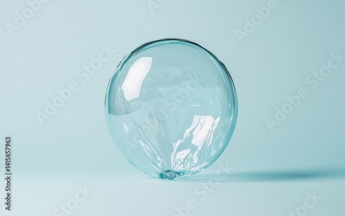 A translucent, light blue bubblegum bubble rests on a pale blue background. The bubble is stretched and slightly elongated at the bottom, creating a visually interesting shape. The lighting is soft