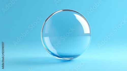 A translucent spherical object rests on a blue background