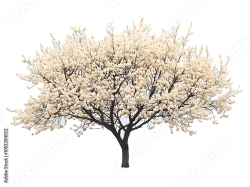 A tree adorned with delicate white flowers, showcasing nature's beauty in full bloom against a clear sky.