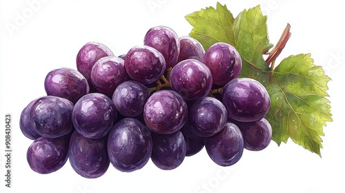 A tropical grape clipart, fruit element, digital painting, exotic style, isolated on white background