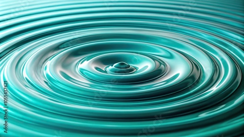 A turquoise-colored liquid drips slowly onto a white background, creating a mesmerizing pattern of concentric circles and waves, modern art, white background