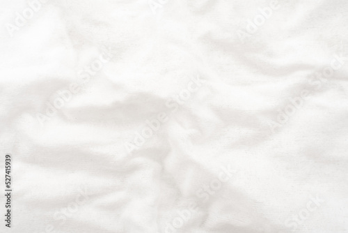 A twisted piece of white fabric. White material or texture with waves and folds. Wrinkled white fabric
