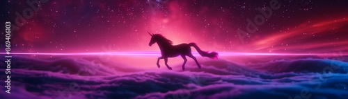 A unicorn in a spacesuit, traveling through a cosmic landscape, neon lights, high detail, cyberpunk style, 3D, vibrant colors, futuristic theme
