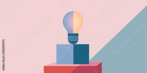 A uniquely designed light bulb rests on a stacked geometric base of vibrant colors, symbolizing creativity and modern artistic expression in a contemporary space