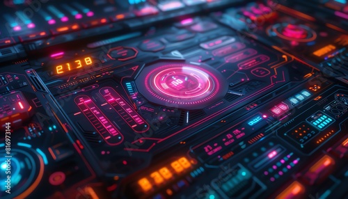 A user interface with sleek, modern design and holographic elements, futuristic, digital art, neon colors, innovative and intuitive