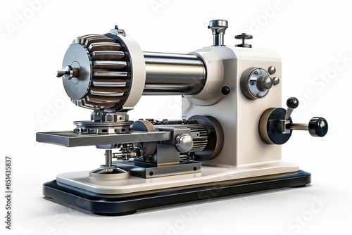 A variable speed bench grinder with a sturdy base and builtin work light, white background