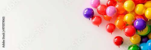 A variety of bright balloons in different colors are scattered across a white surface, creating a cheerful and inviting ambiance perfect for any celebration or festive event
