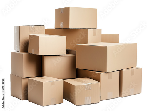 A variety of cardboard boxes are stacked together in different sizes, ready for packaging and shipping purposes.