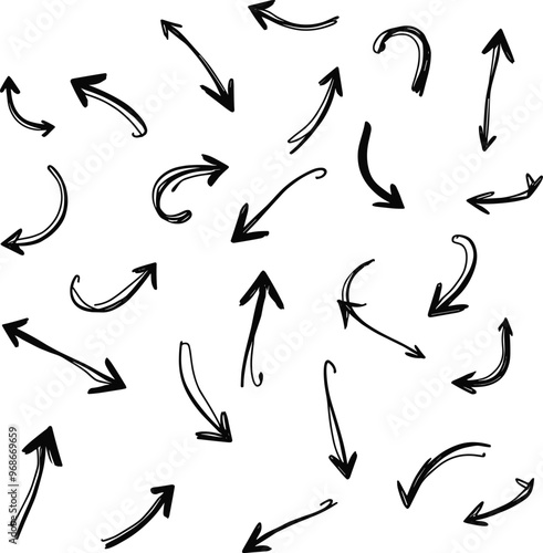 A variety of hand-drawn black arrows pointing in different directions on a white background.