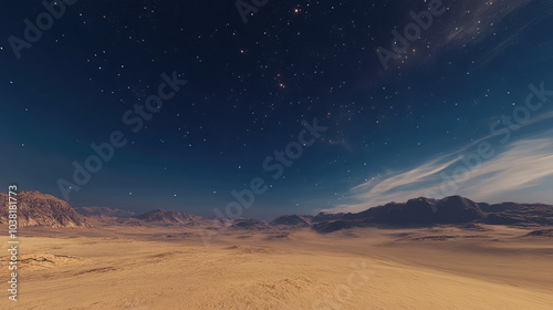 A vast desert expanse under a starstudded sky sand dunes stretch into the horizon
