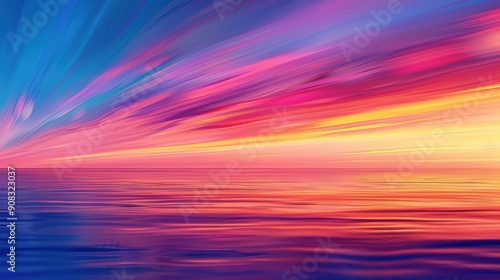 A vast sky background with a vibrant sunset casting a warm glow over the horizon, with streaks of orange, pink, and purple blending seamlessly into the deepening blue