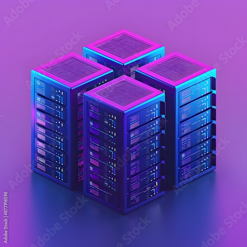 A vibrant 3D illustration of futuristic server racks with colorful lighting, showcasing modern technology and data storage.