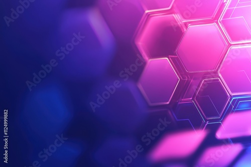 A vibrant abstract background featuring hexagonal shapes in shades of pink and blue, creating a modern and tech-inspired aesthetic.
