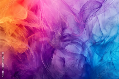 A vibrant abstract background with swirls of purple, orange, and blue ink.