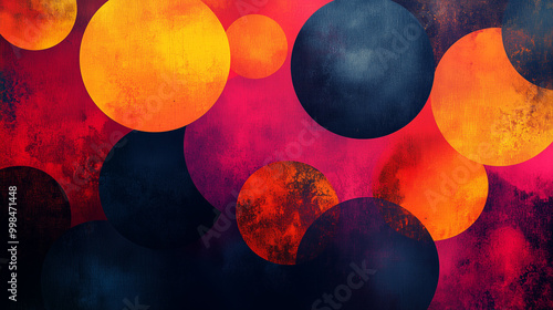 A vibrant abstract design featuring colorful circles against a deep, textured background.