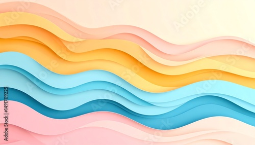 A vibrant abstract design featuring wavy layers in pastel colors, creating a sense of movement and depth