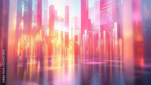 A vibrant, abstract landscape featuring colorful vertical pillars with a glowing, futuristic ambiance.