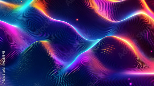 A vibrant abstract of flowing, glowing waves in shades of purple, pink, and blue, evoking a sense of energy and motion.