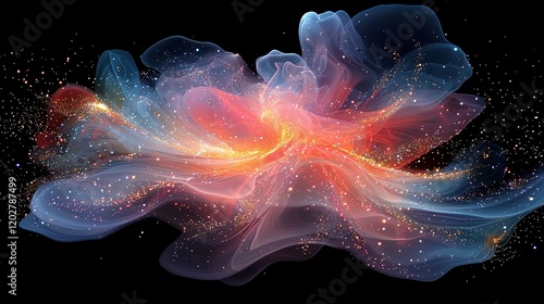 A vibrant, abstract representation of cosmic energy and swirling colors in a dark space.