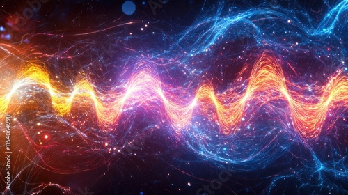 A vibrant abstract representation of energy waves in a cosmic setting.