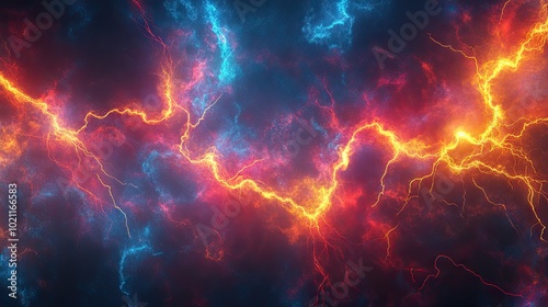 A vibrant abstract representation of lightning bolts illuminating a colorful cosmic background.