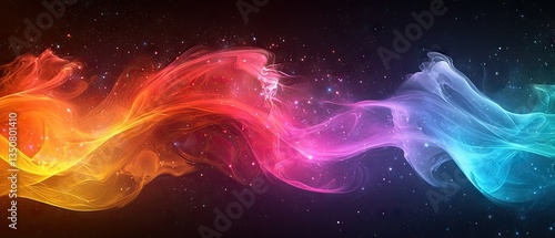 A vibrant abstract swirl of colors resembling cosmic energy in a dark background.