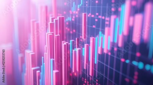 A vibrant, abstract visualization of financial data with colorful bars and a grid background, representing trends and market analysis.
