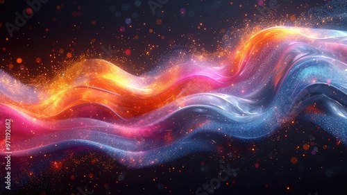 A vibrant abstract wave of colors and light, creating a dynamic and energetic visual effect.
