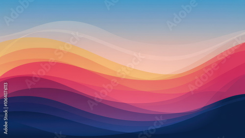 A vibrant, abstract wave pattern showcasing a gradient of warm hues, including pink, orange, and blue, creating a serene and dynamic visual atmosphere.