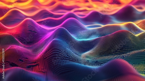 A vibrant and dynamic abstract representation of waves, showcasing blend of colors and textures that evoke sense of movement and energy.
