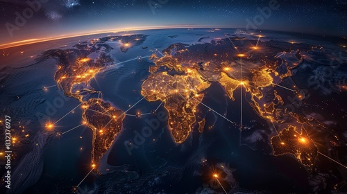 A vibrant and dynamic stock photo illustrating the concept of a Global Village, showcasing a network of interconnected lights and pathways resembling a world map, symbolizing the i