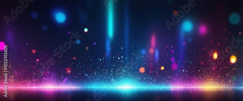 A vibrant and glamorous abstract background with a mixture of neon lights, glowing sparkles, and a soft, luxurious texture. The image captures the essence of nightlife with its de focused bookend
