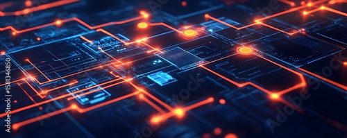 A vibrant and intricate representation of a digital network, showcasing glowing connections and circuits. Ideal for technology, innovation, or data visualization themes.
