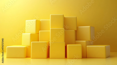 A vibrant arrangement of bright yellow cubes creates an eye-catching display. Ideal for backgrounds and abstract concepts.
