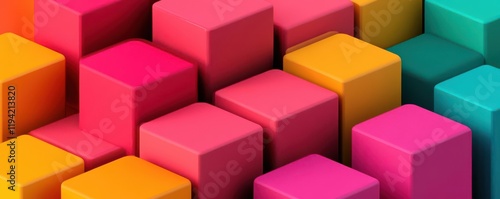 A vibrant arrangement of colorful blocks, showcasing shades of pink, yellow, and teal in a visually appealing pattern.