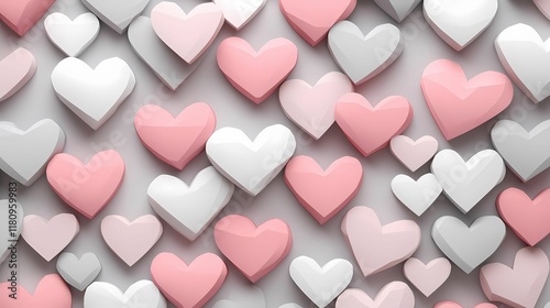 A vibrant arrangement of pink, white, and gray hearts creates a playful and romantic aesthetic, perfect for celebrations and decor.
