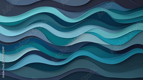 A vibrant banner unfurls, its horizontal surface a canvas for a dynamic modern design featuring waves in a gradient of teal, very dark blue, and slate gray hues, evoking a sense of depth and movement.