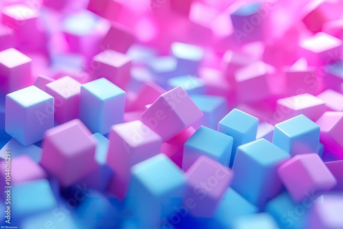 A vibrant blend of soft geometric shapes creates a mesmerizing texture in shades of pink and blue, captivating viewers with dynamic visual depth