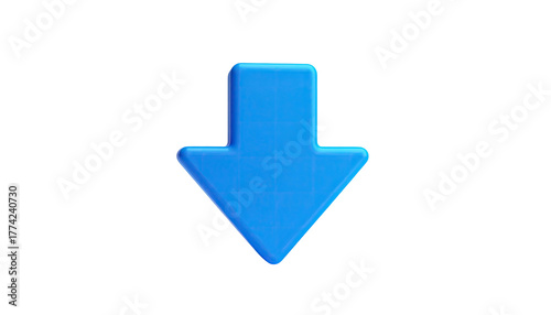 A vibrant, blue 3D arrow pointing downward against a stark black background