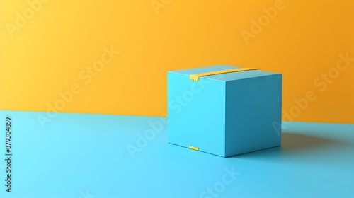 A vibrant blue box against a yellow and blue background, perfect for concepts of shipping, delivery, and modern packaging.