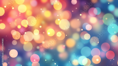 A vibrant bokeh background featuring a blend of soft light circles in various colors, including blue, yellow, purple, and pink hues. Perfect for invitations, celebrations, or greeting cards.