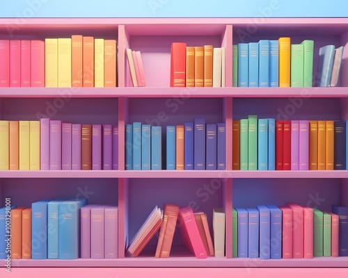 A vibrant bookshelf filled with colorful books, perfect for inspiring creativity and learning in a cheerful environment.