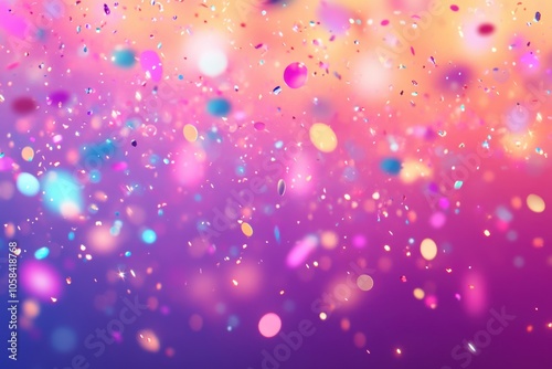 A vibrant burst of multicolored confetti particles against a gradient background, creating a festive