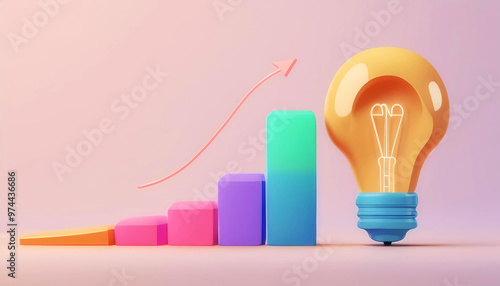 A vibrant business concept showcasing growth through colorful graphs and a light bulb symbolizing ideas and innovation.