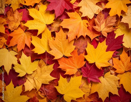 A vibrant carpet of yellow, red, and orange maple leaves creates a perfect seasonal texture