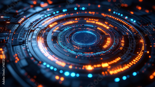 A vibrant circular design with glowing lines and patterns creates a stunning, high-tech visual impact