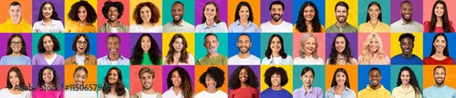 A vibrant collage showcases a variety of happy faces from different cultures and backgrounds. Each individual exudes joy, emphasizing the beauty of unity in diversity.