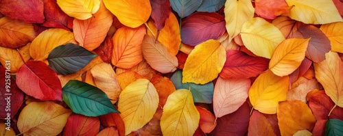 A vibrant collection of autumn leaves in various colors, including orange, yellow, and red, creating a warm seasonal atmosphere.