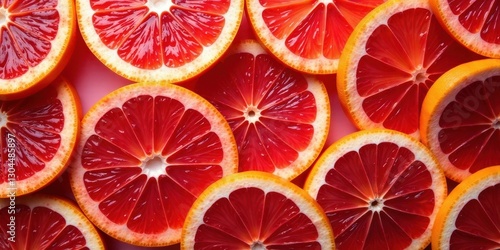 A vibrant collection of juicy citrus fruit slices, arranged in a visually appealing pattern, showcasing their rich red hue and segmented textures.
