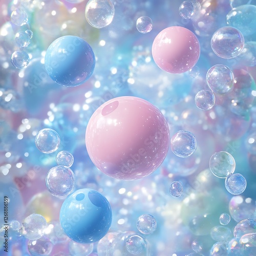 A vibrant composition of colorful bubbles floating in a dreamy background, creating a whimsical and cheerful atmosphere. Perfect for playful designs and creative projects.